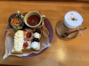 サラダやミネストローネスープもあり、個人的には小倉生クリームのトーストが甘さもちょうどよく、一番美味しかったです。